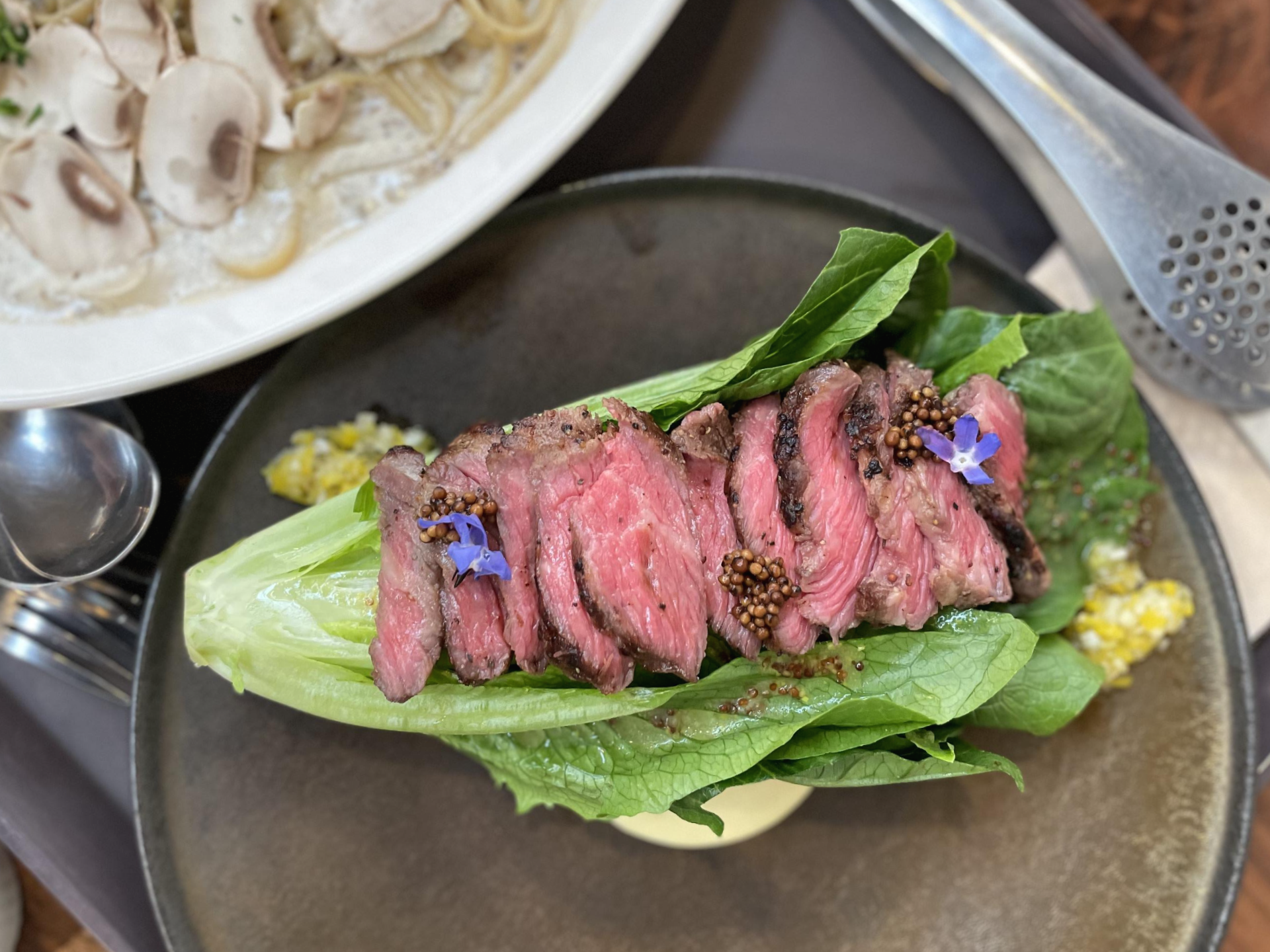 사실 점심에 가기로 한 곳이 오후 4시에 오픈이라 그전에 간단하게 배를 채울 겸 주문한 로스트비프 샐러드. 플레이팅이 이쁘긴 한데, 로메인을 잘라먹어야 하는 번거로움이 동반되는 음식이었다.